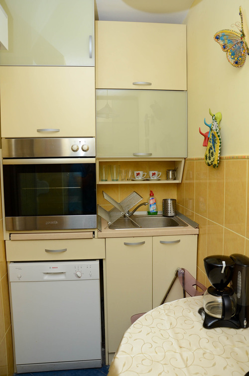 Apartman je ušuškan, miran, moderan sa novim nameštajem, kompletno opremljenom kuhinjom i kupatilom sa veš mašnom, mašinom za pranje sudova (u kuhinji). Apartman takodje poseduje klima uredjaj, wifi, , centralno grejanje, kablovsku televiziju povezanu na LED TV-u, mini liniju. Dnevni boravak koji, iako se faktički nalazi u sklopu jedne te iste prostorije jasno je funkcionalno odvojen od spavaćeg dela. Blindirana vrata.
